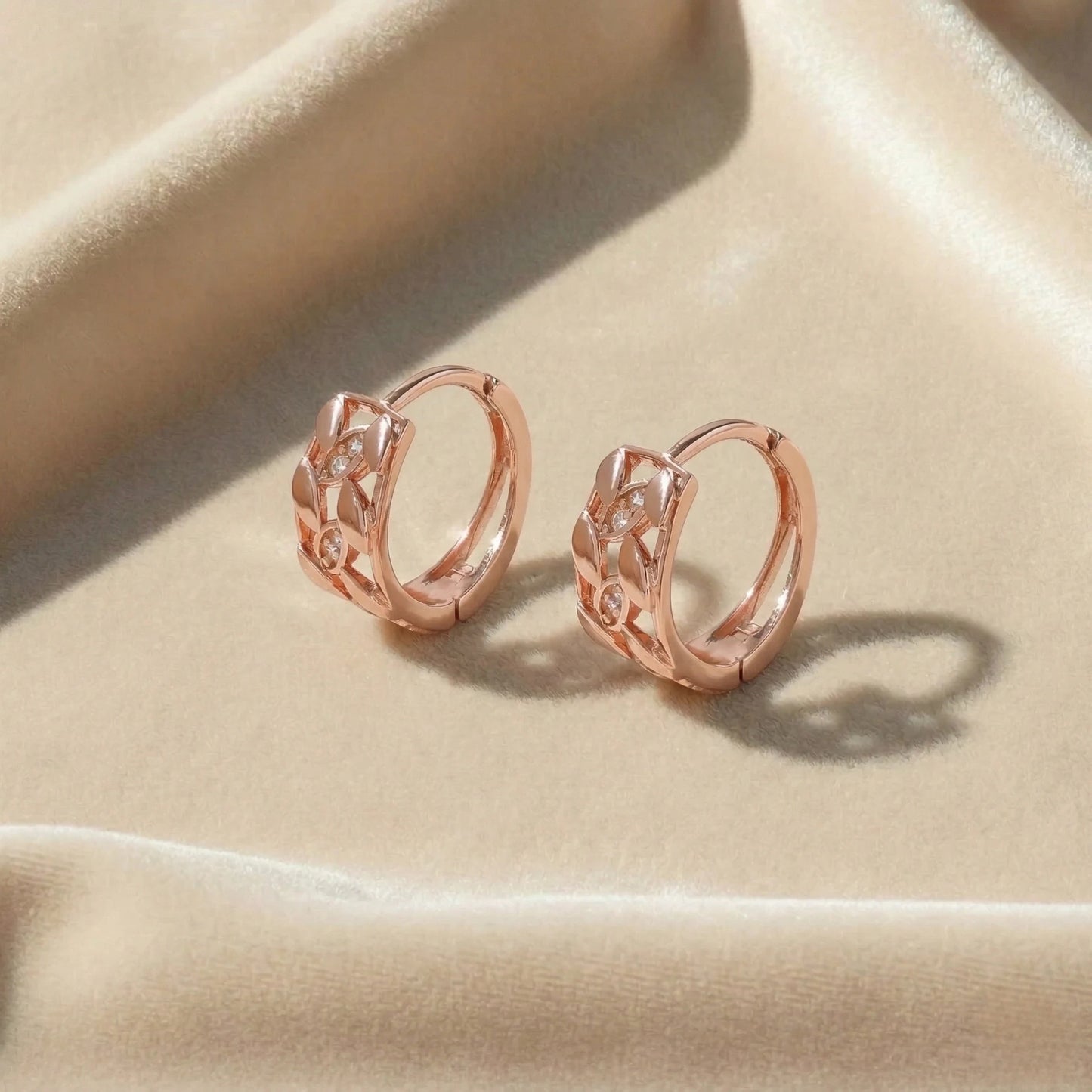 Rose Gold Leaf Motif Hoops