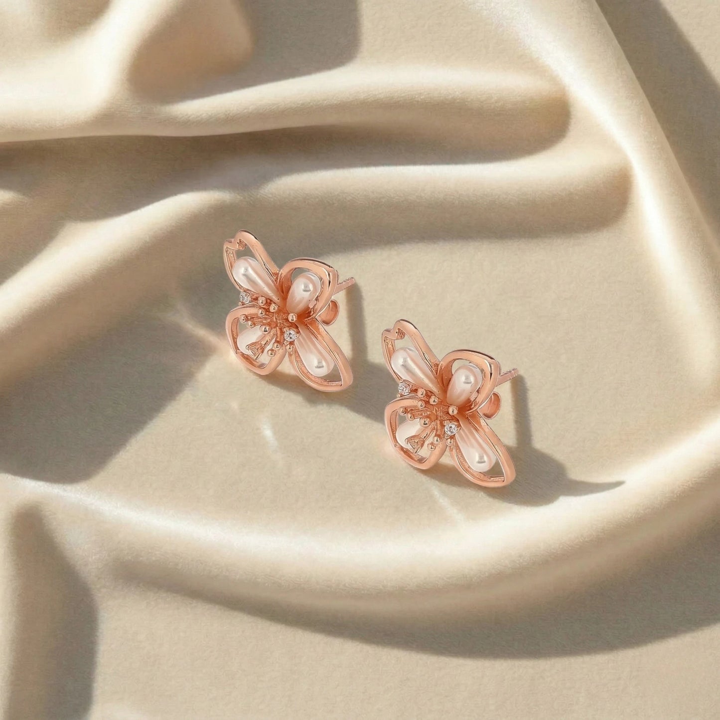 Rose Gold Pearl Petal Studs