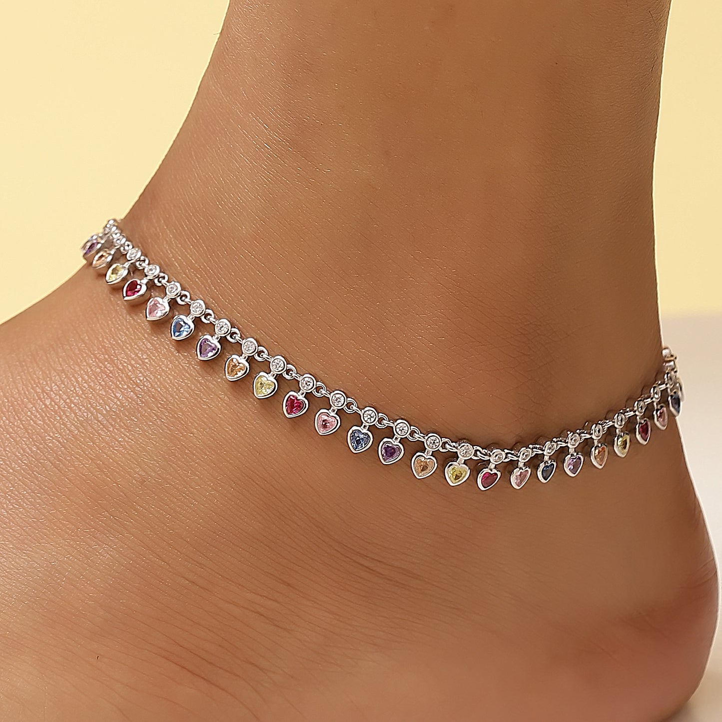Rainbow Heart Marcasite Anklet