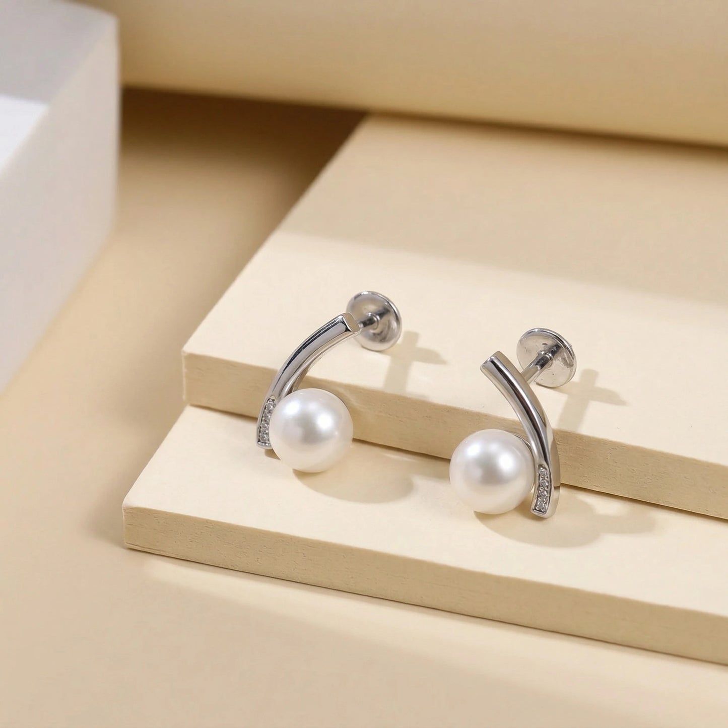 Twin-Stone Pearl Arc Studs