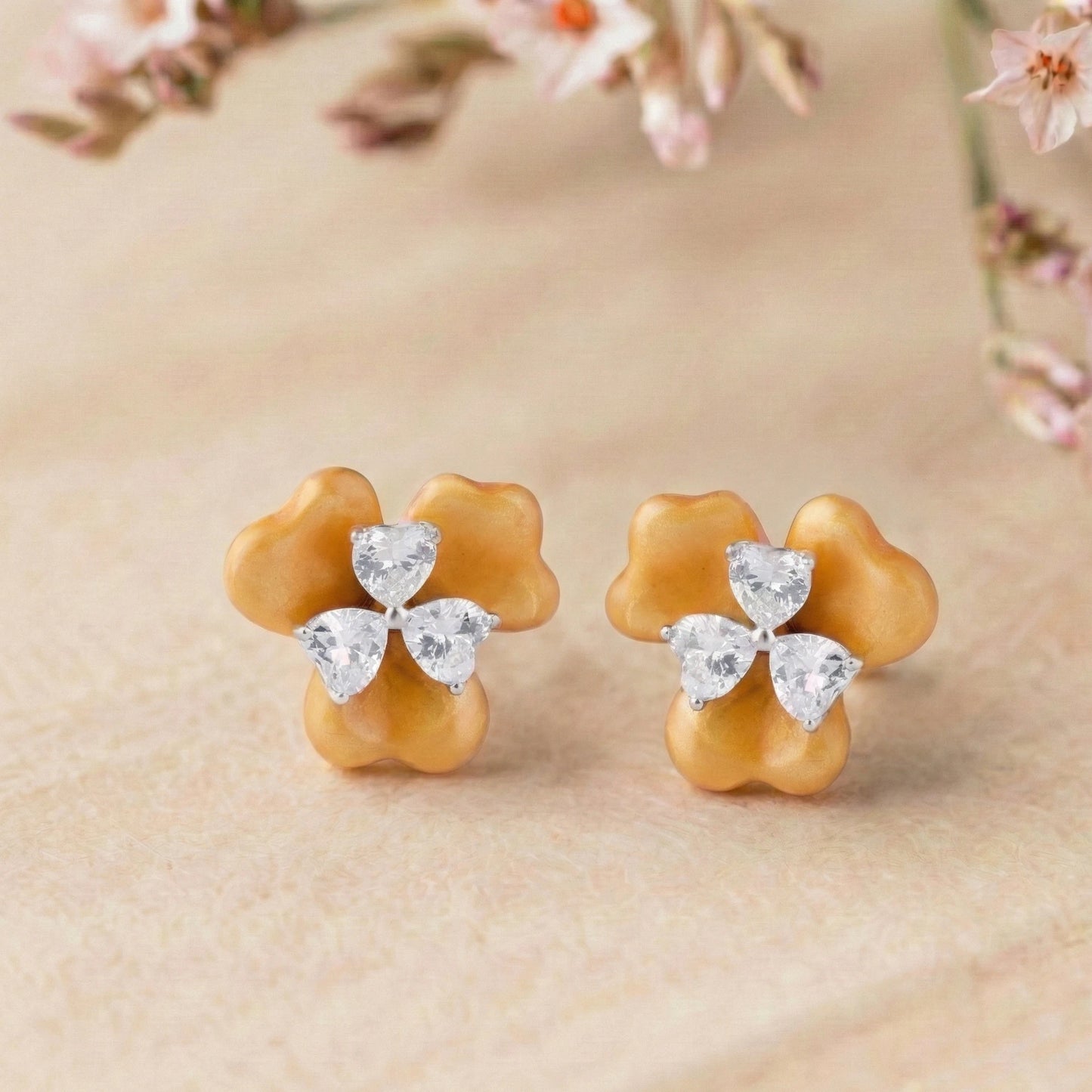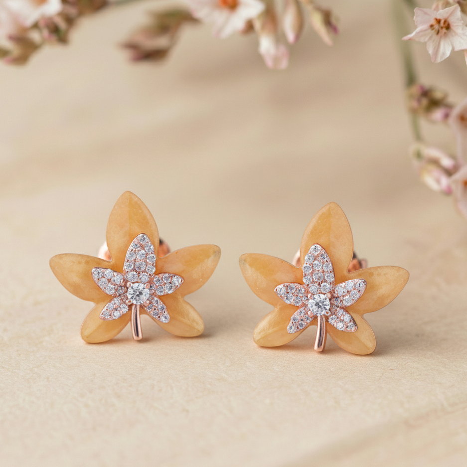 Golden Petal Floral Stud Earrings