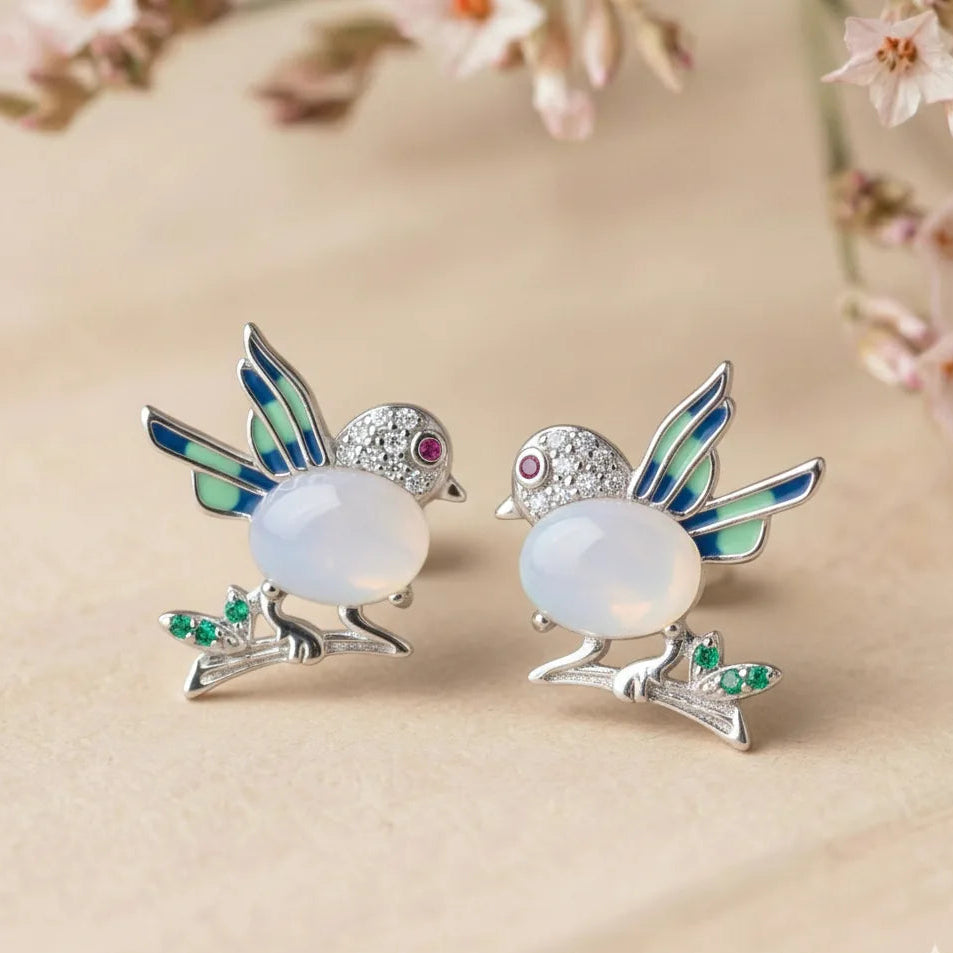 Silver Songbird Studs