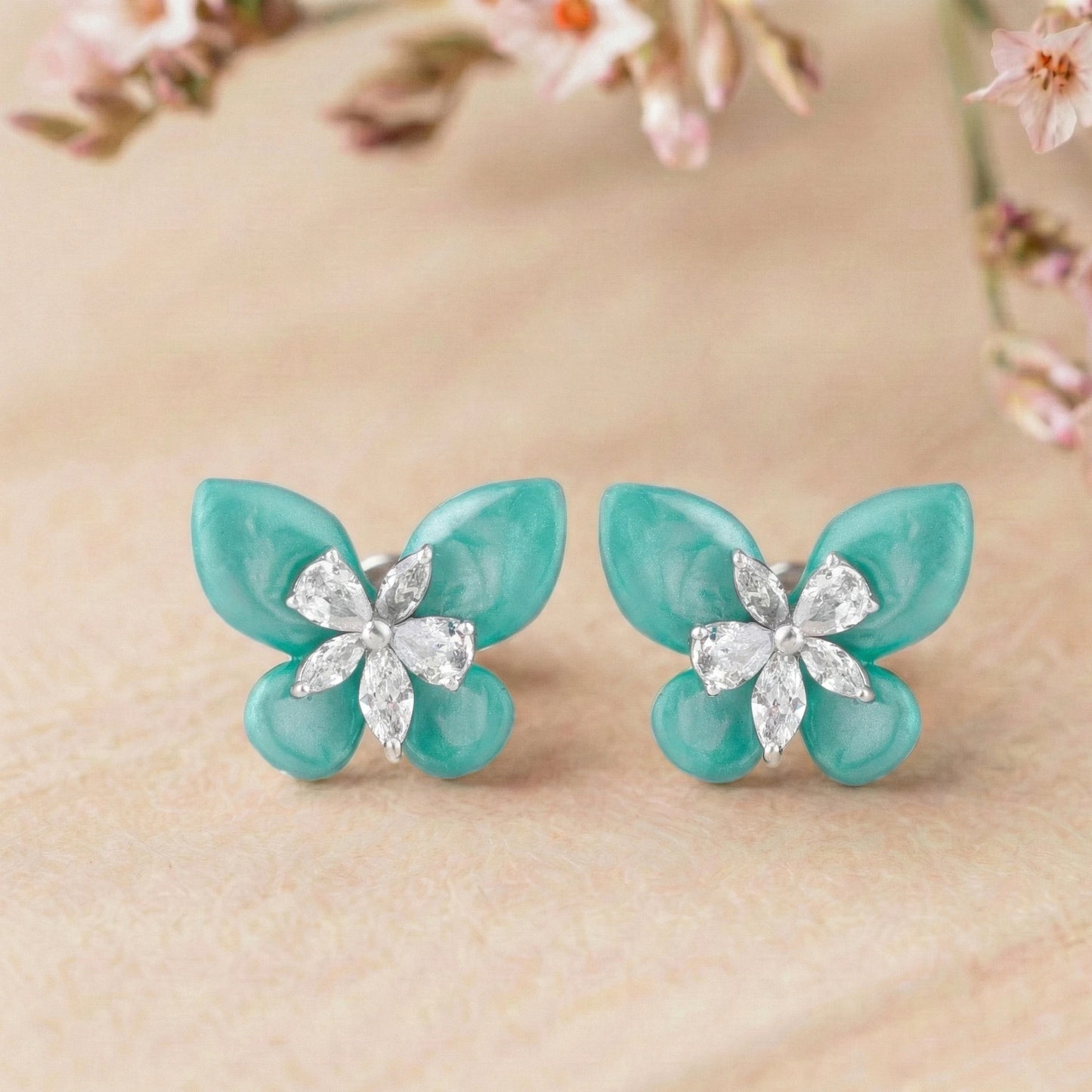 Turquoise Petal Butterfly Studs
