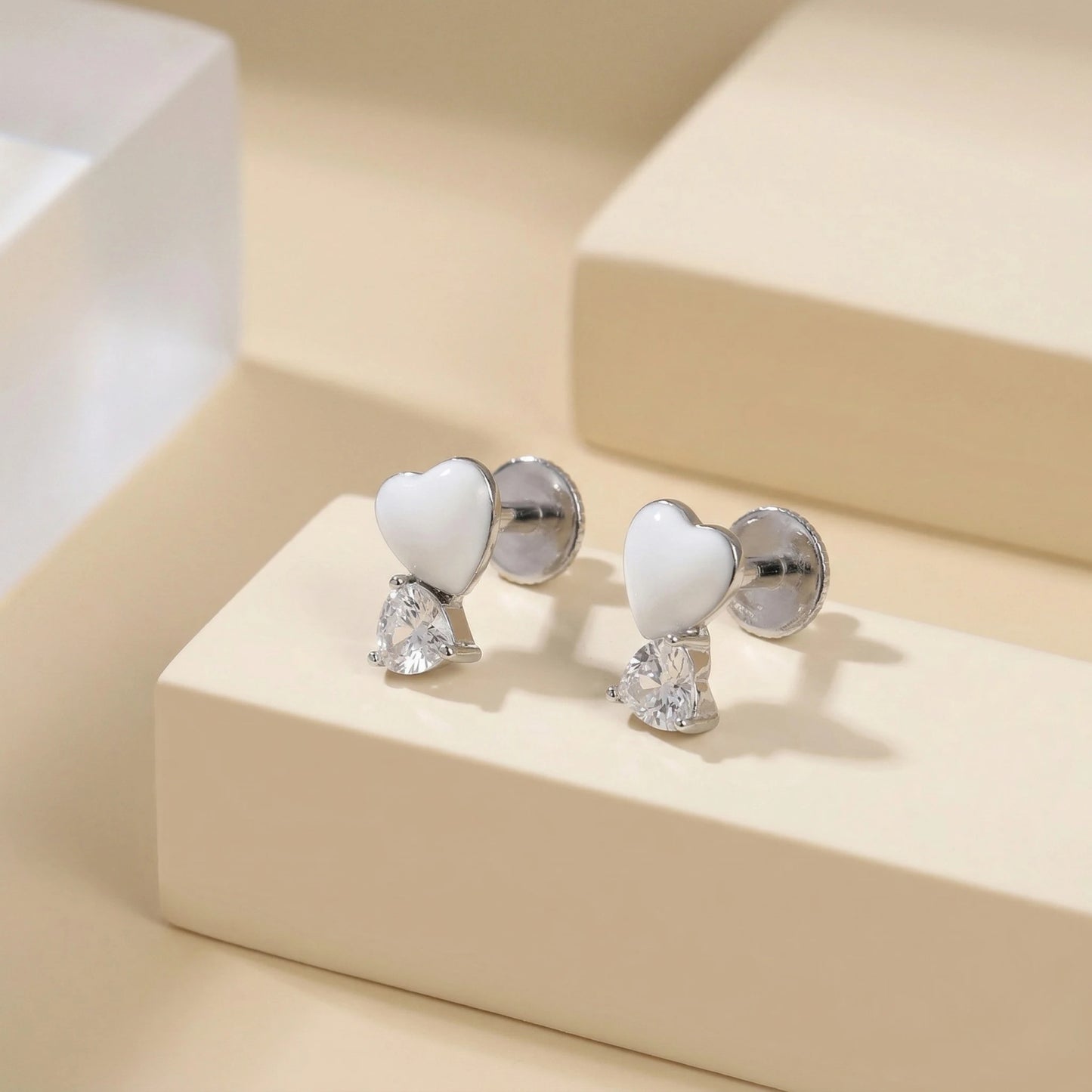 Silver Double Heart Crystal Studs