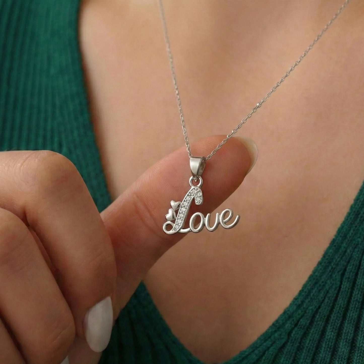 Silver Love Script Pendant