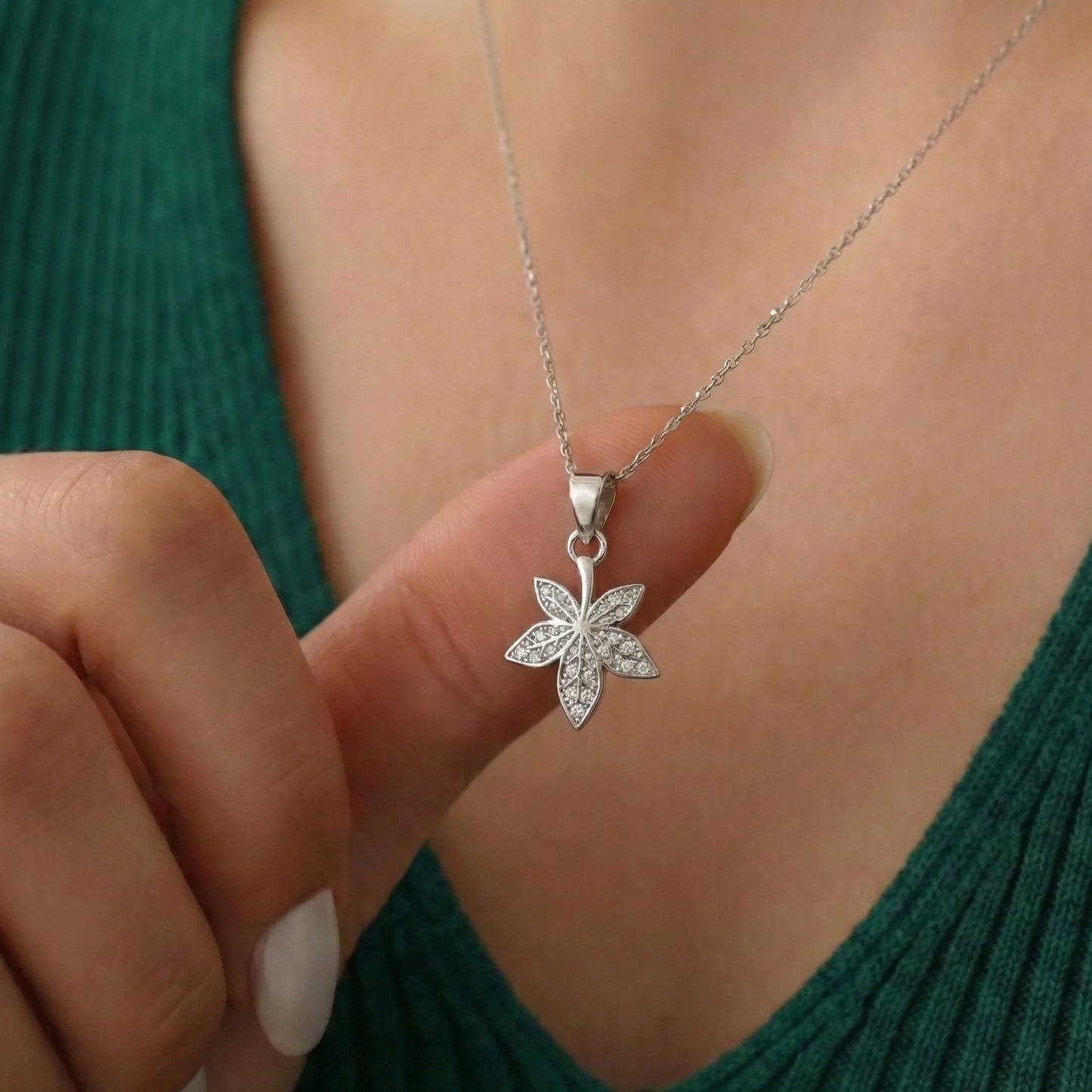 Silver Flower Pendant With Drop