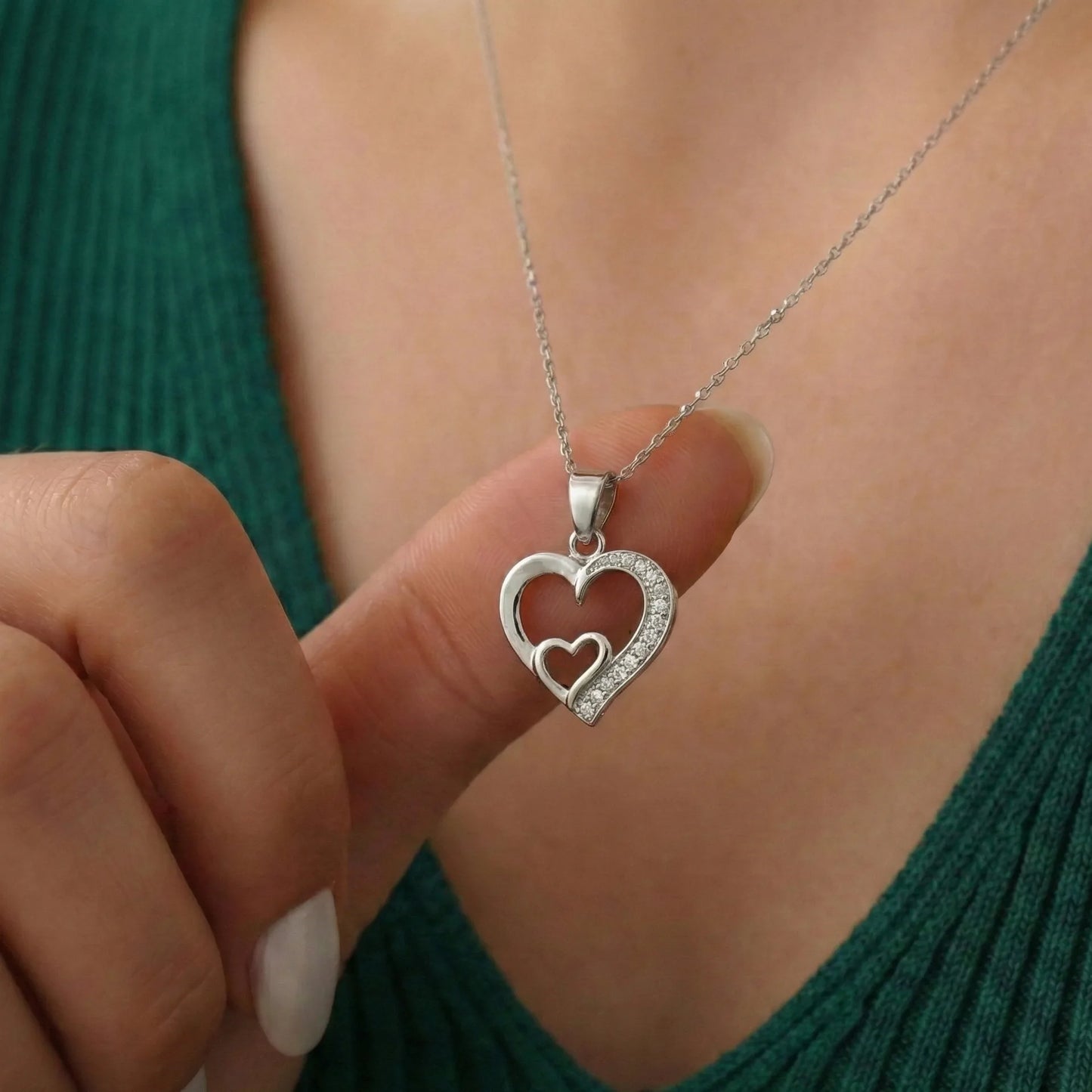 Silver Double Heart Pendant