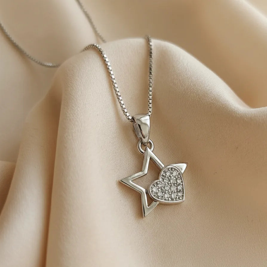 Silver Star and Heart Pendant
