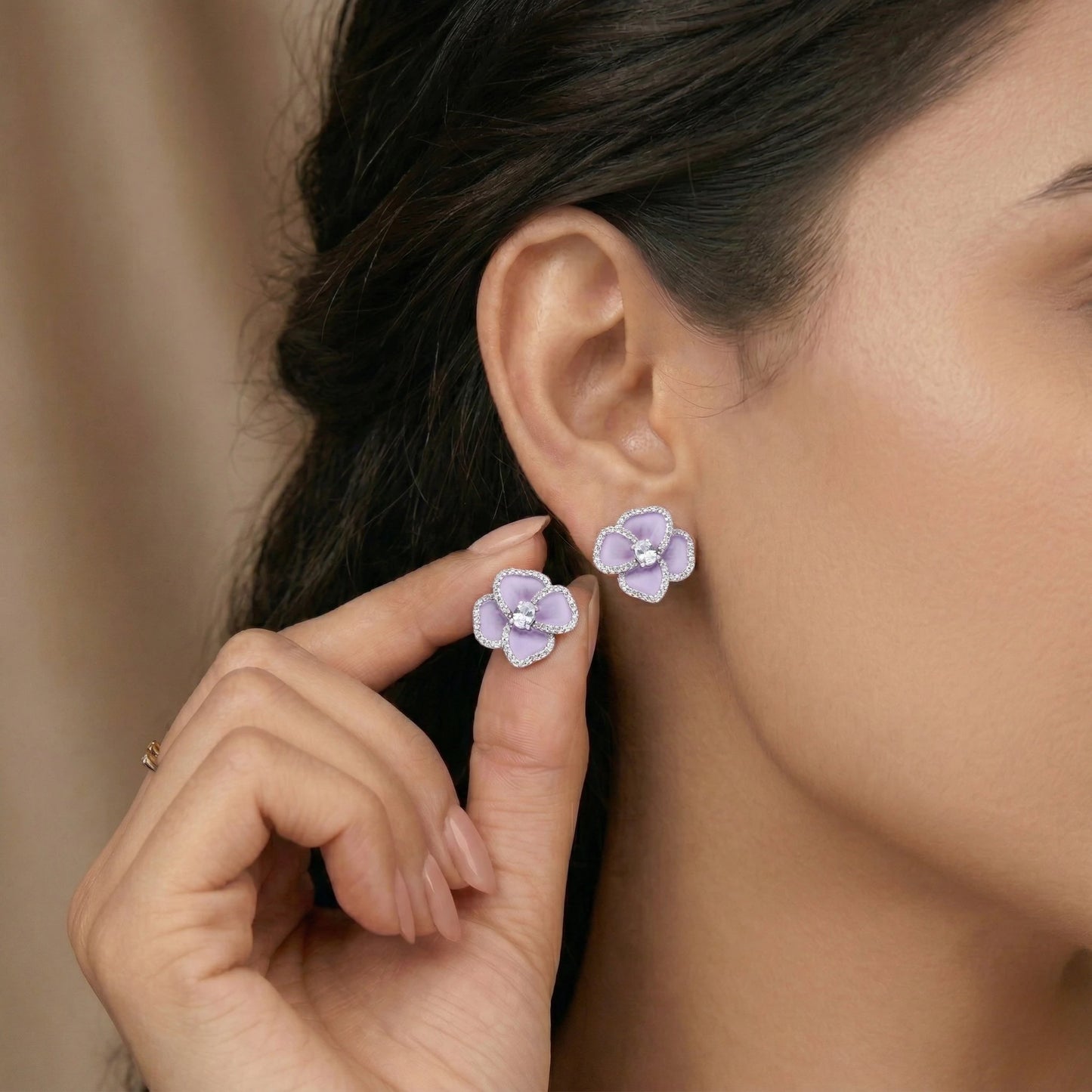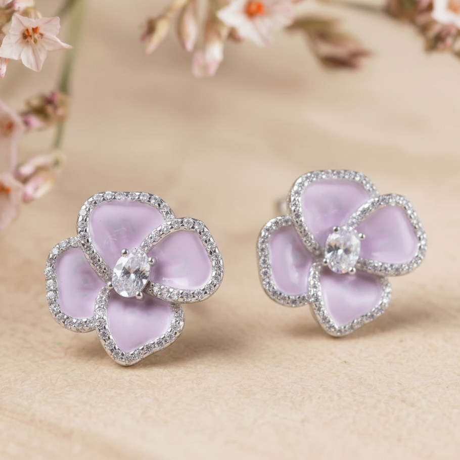 Lilac Petal Halo Studs