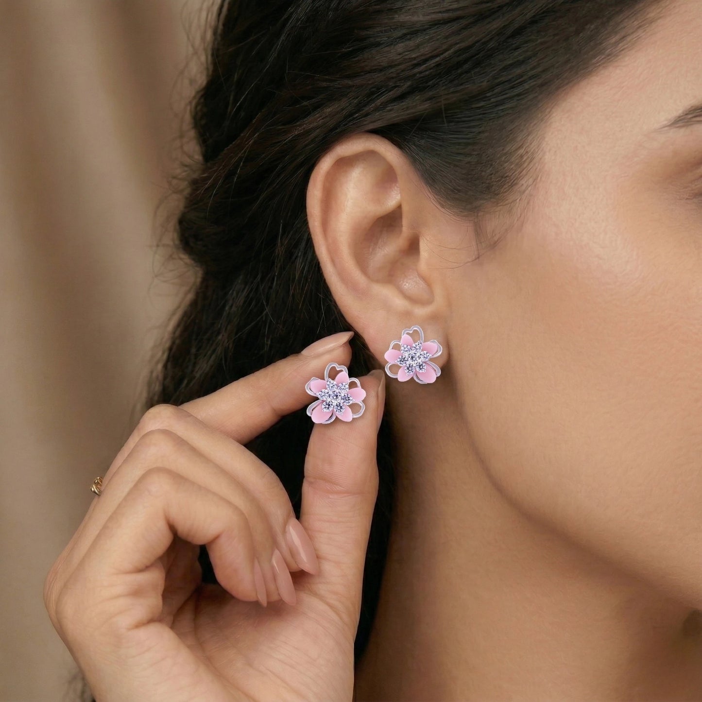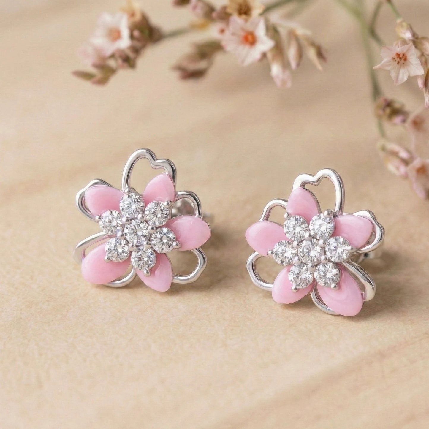 Pink Blossom Crystal Stud Earrings
