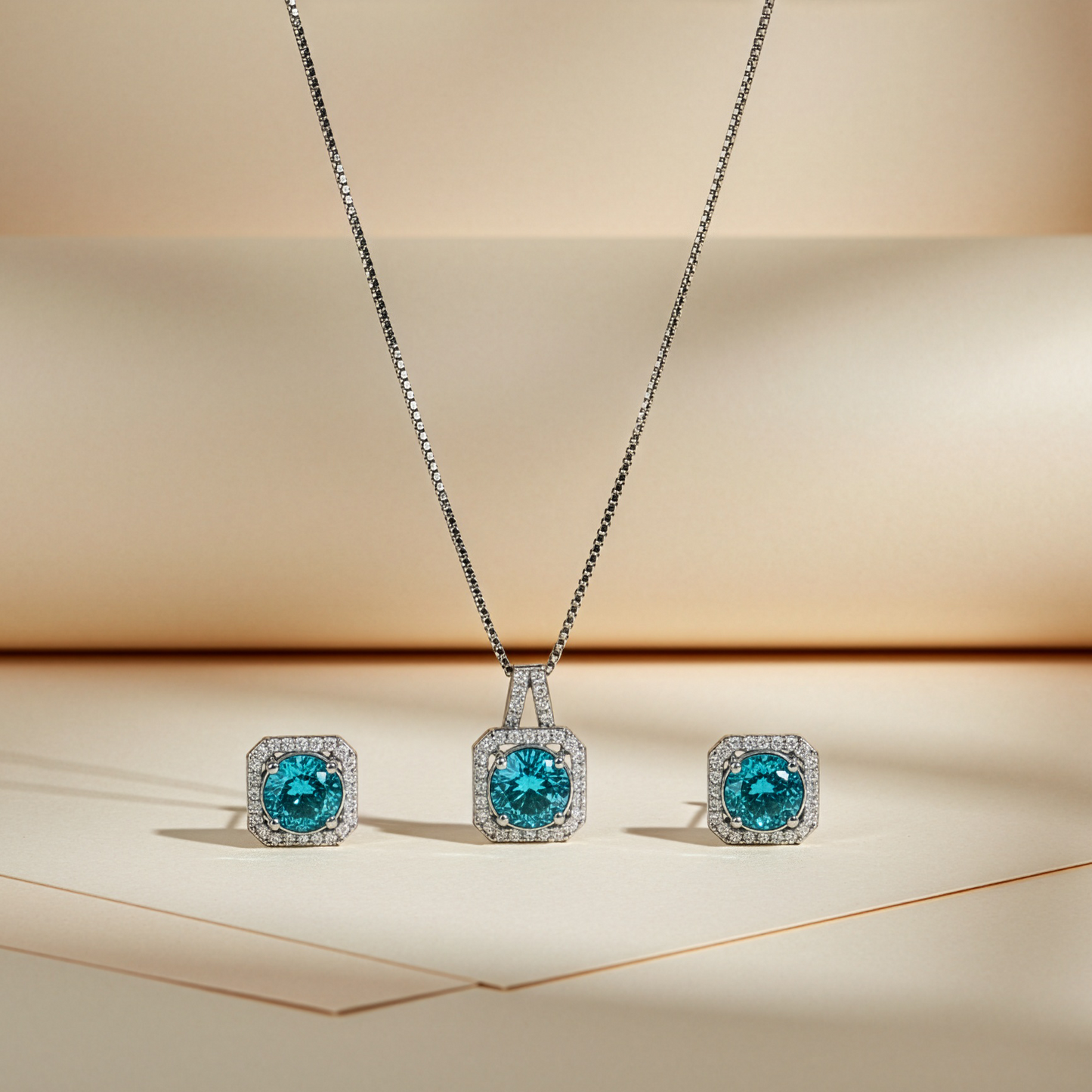 Halo Double Drop Pendant Set