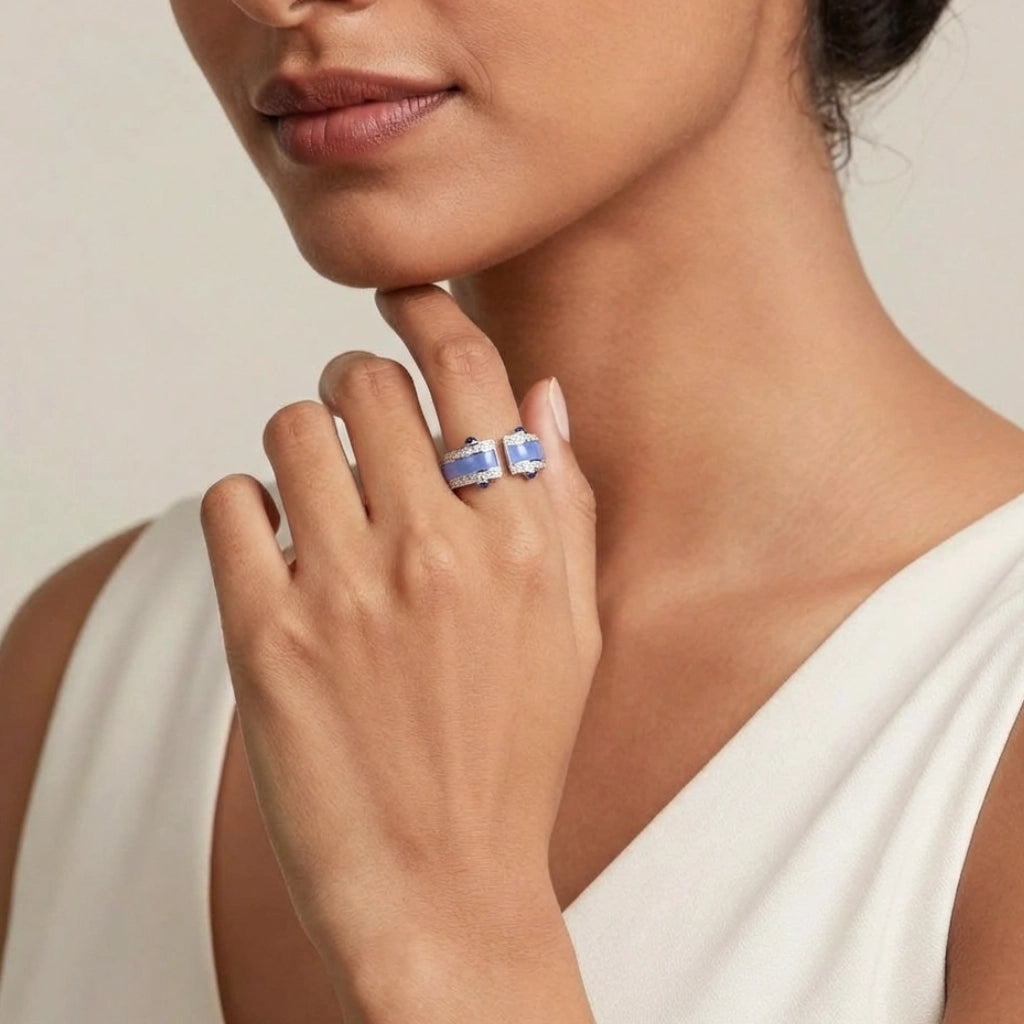 Dual Enamel Pavé Open Ring