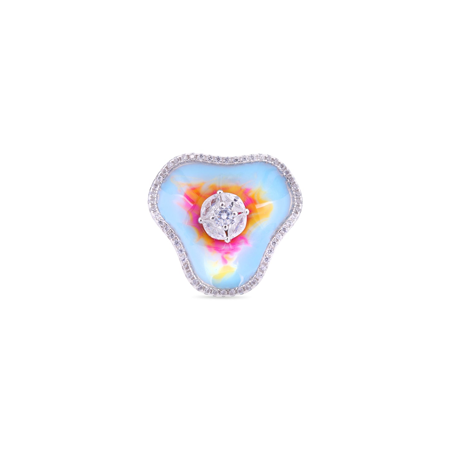 Pair with minimalist silver pieces to highlight the ring’s vibrant colors.