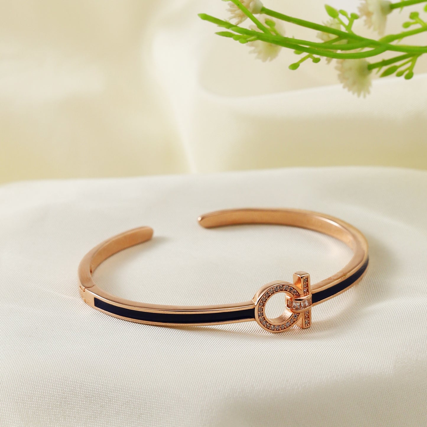 Rose-Gold Navy Enamel Cuff