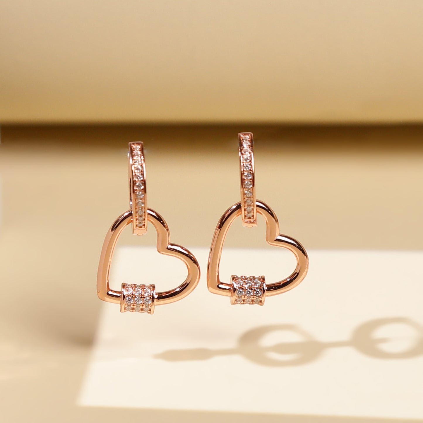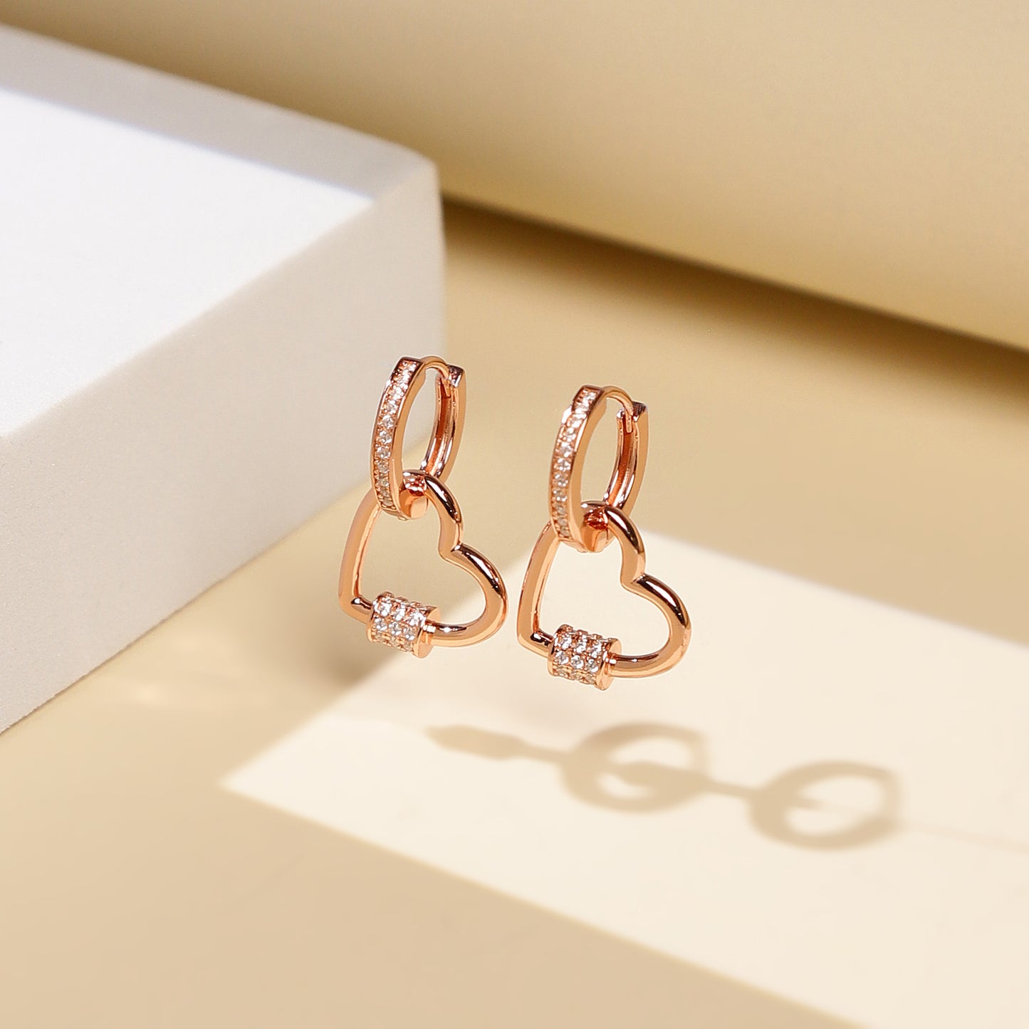 Rose Gold Heart Link Hoops