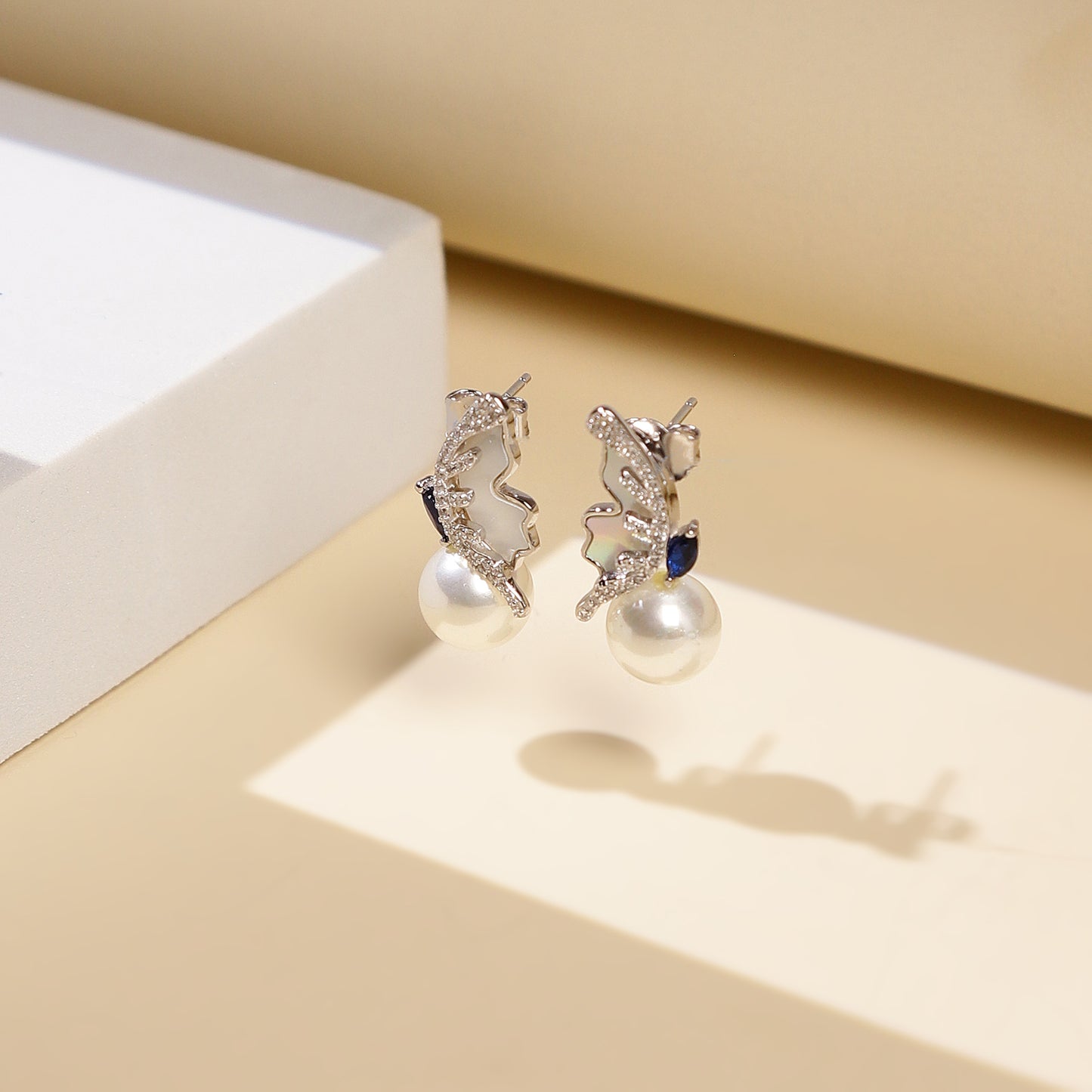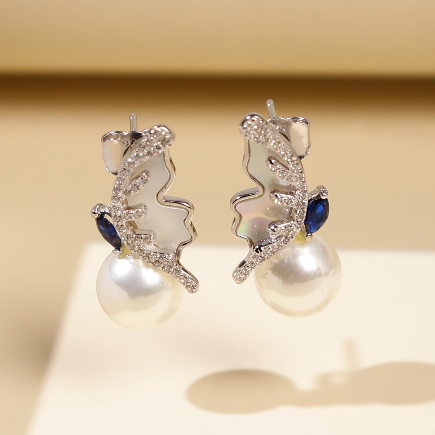 Twin-Stone Pearl Arc Studs