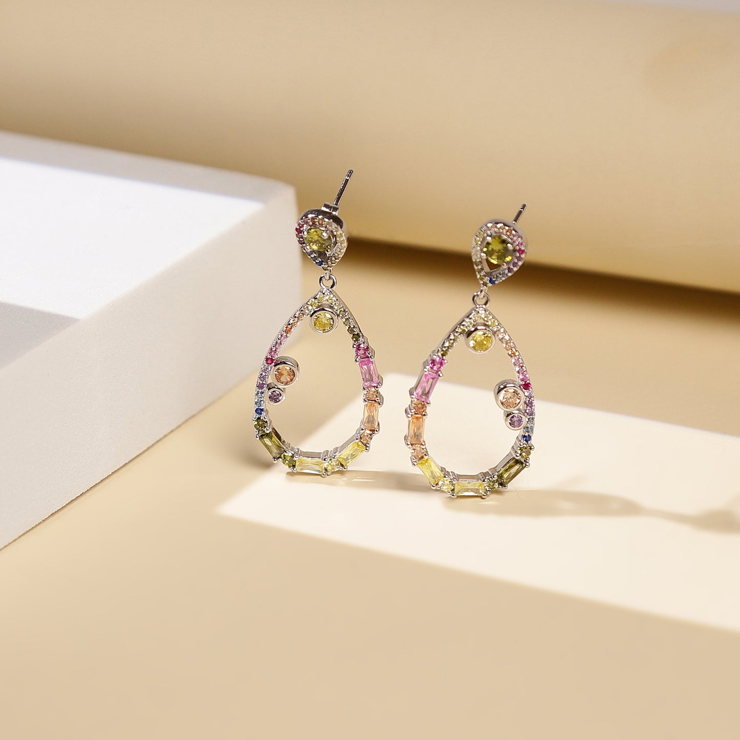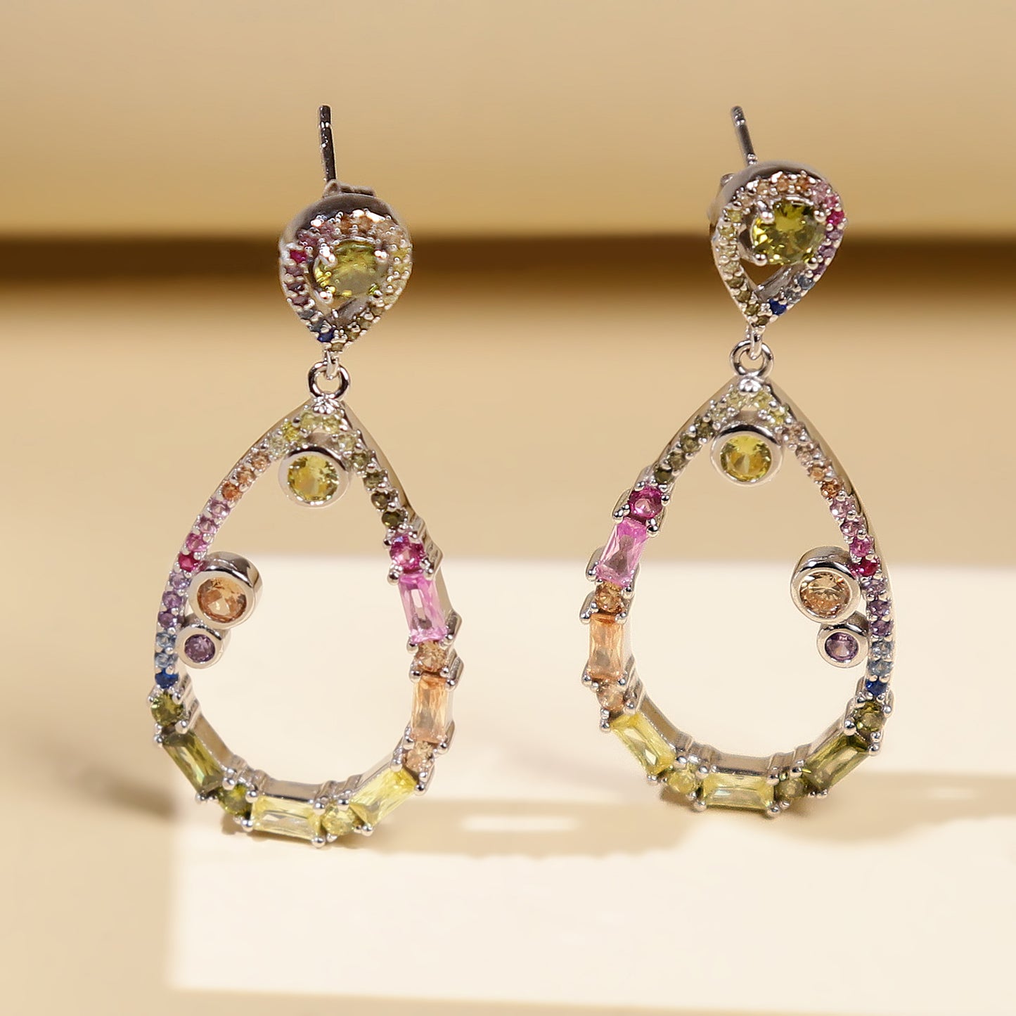Multi-Color Solitaire Teardrop Earrings