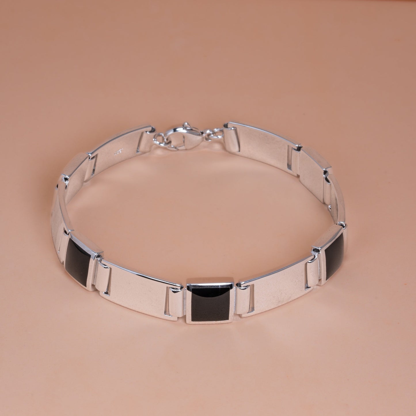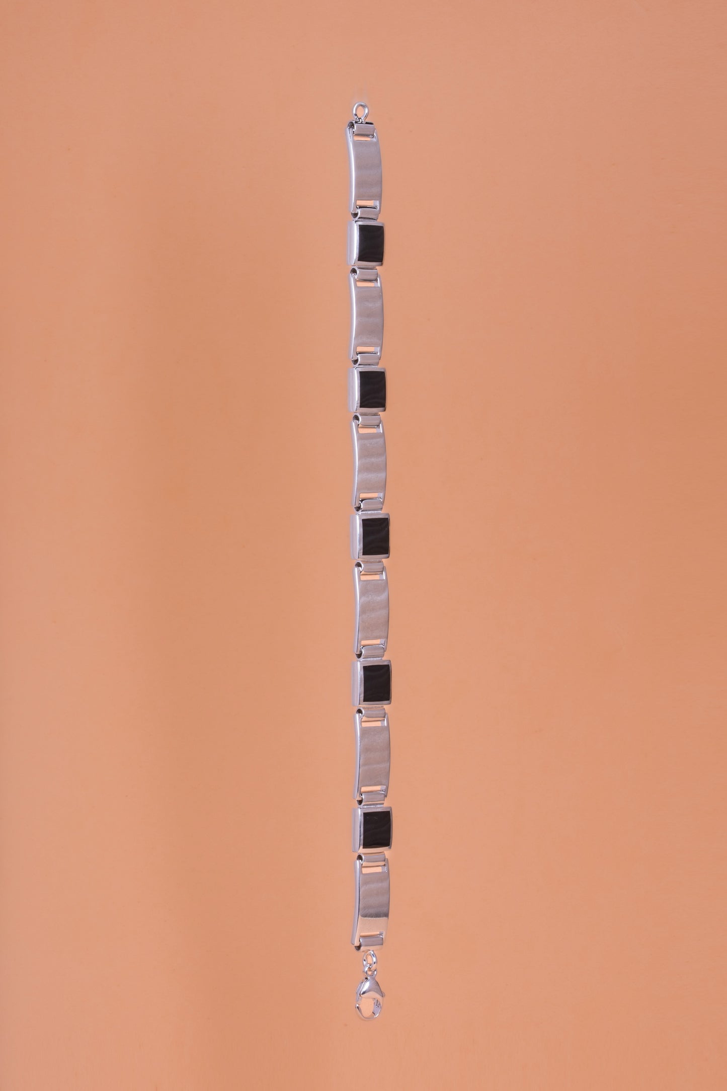 A sharp silver Bracelet detailed with bold black tile inserts for a clean geometric profile. Balanced and modern for daily wear.
